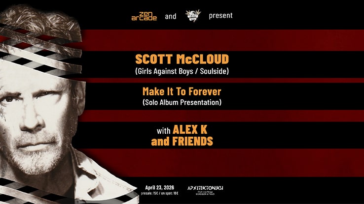 Η Zen Arcade και το Threechords Records Store παρουσιάζουν τον Scott McCloud μαζί με τους Alex K and Friends σε μια μοναδική ζωντανή εμφάνιση.